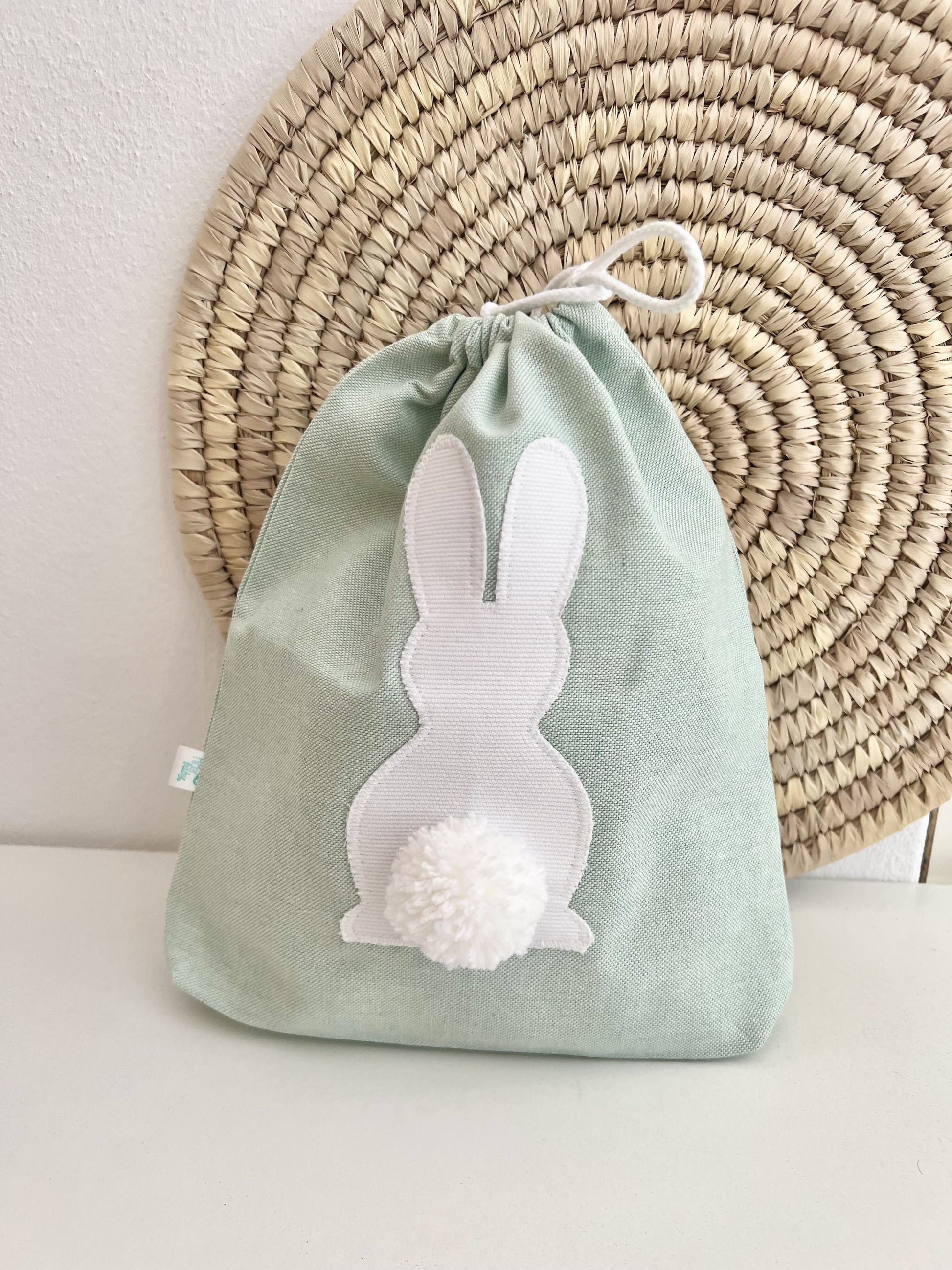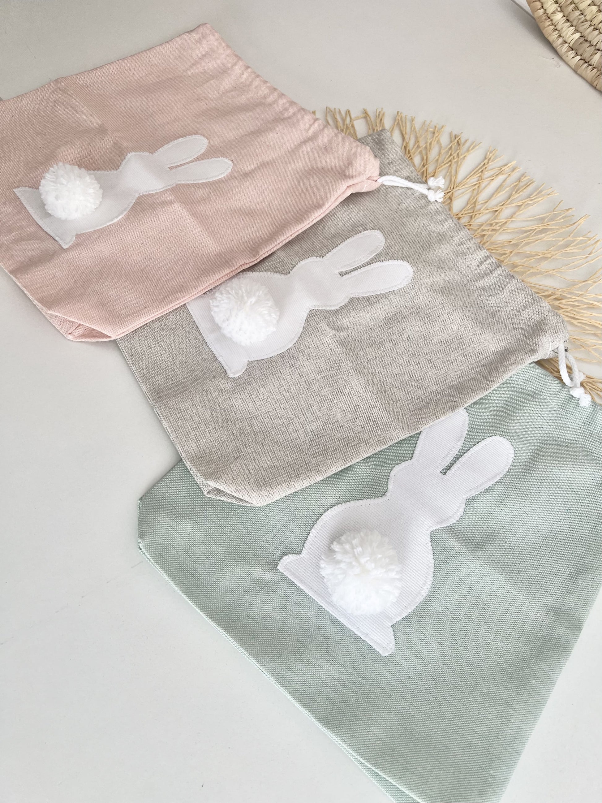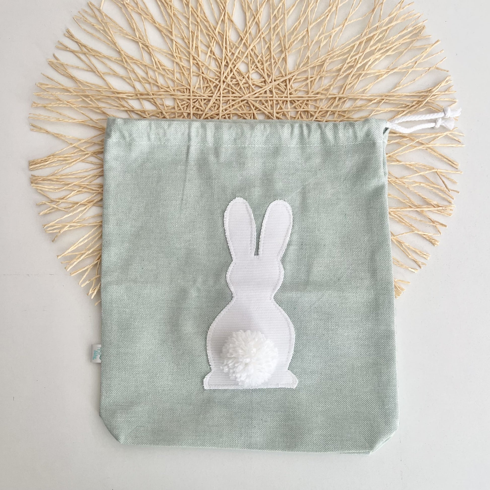 Escolha o padrão do saco (Padrão), o coelho e o pompom serão brancos.