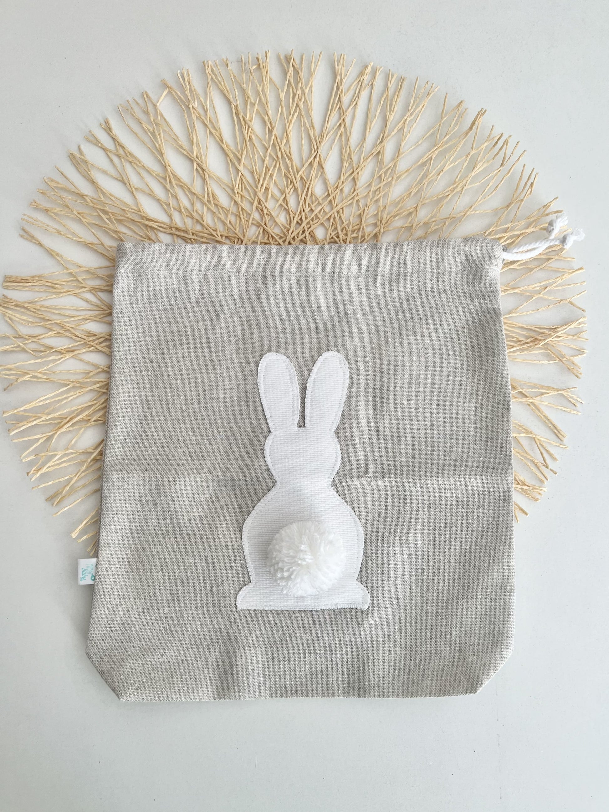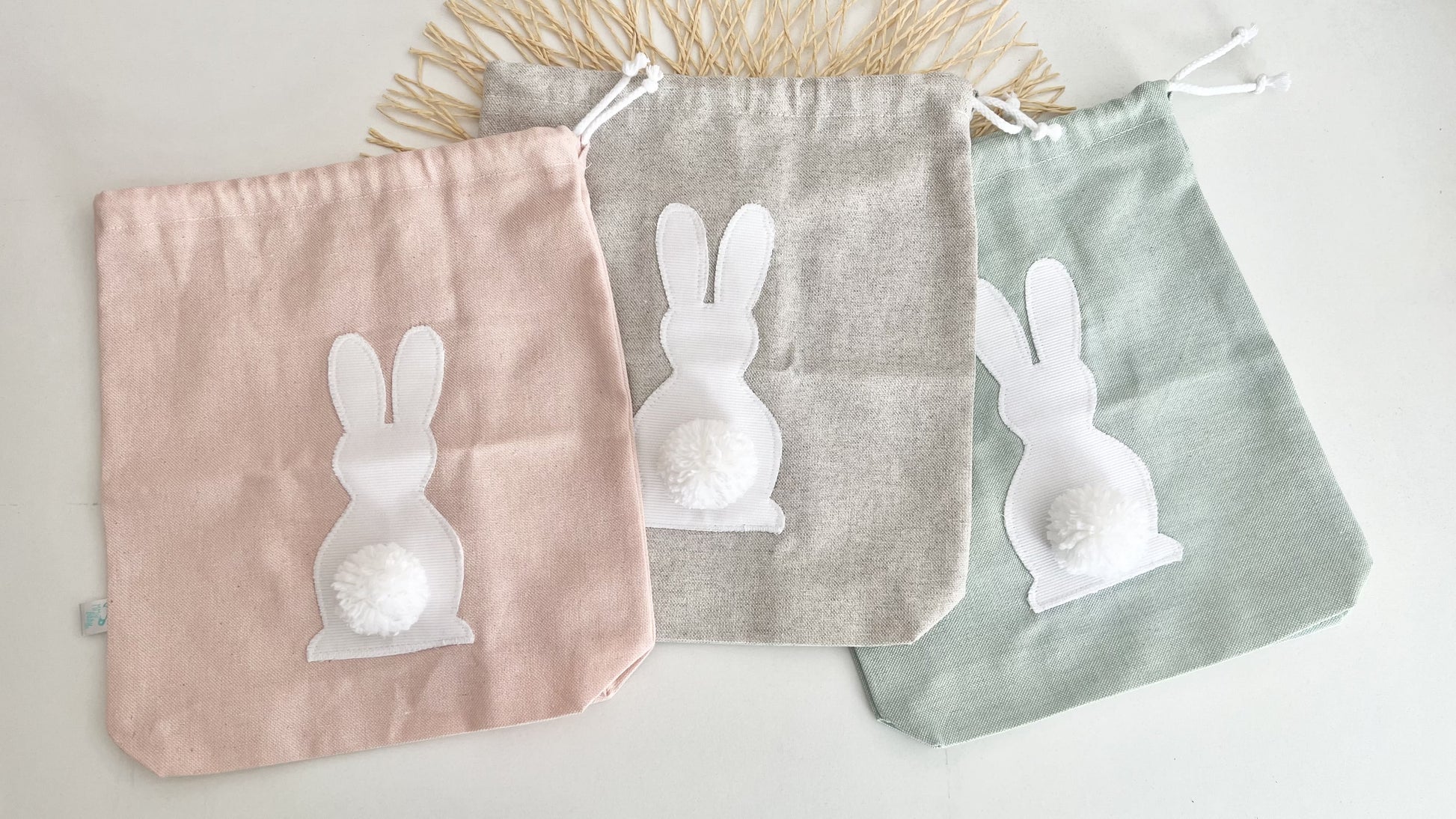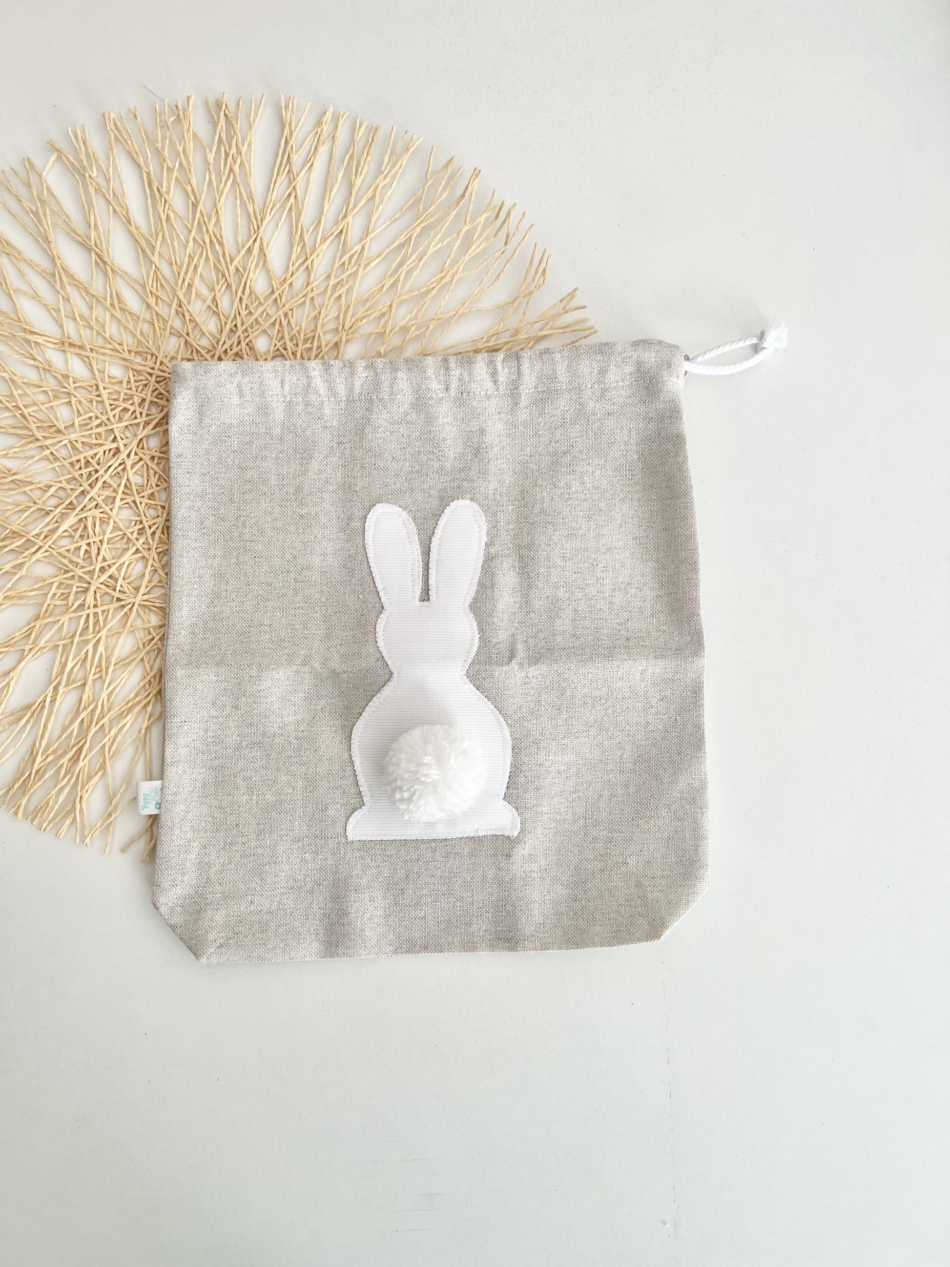 Escolha o padrão do saco (Padrão), o coelho e o pompom serão brancos.