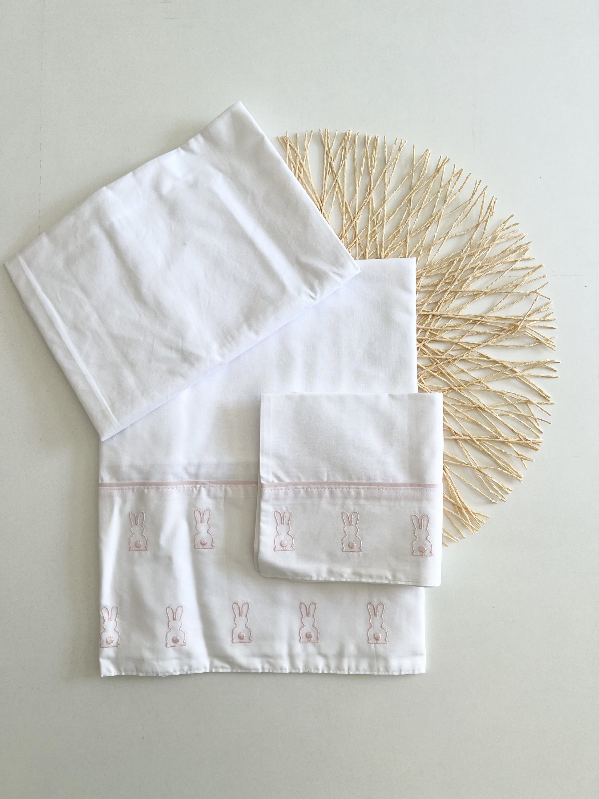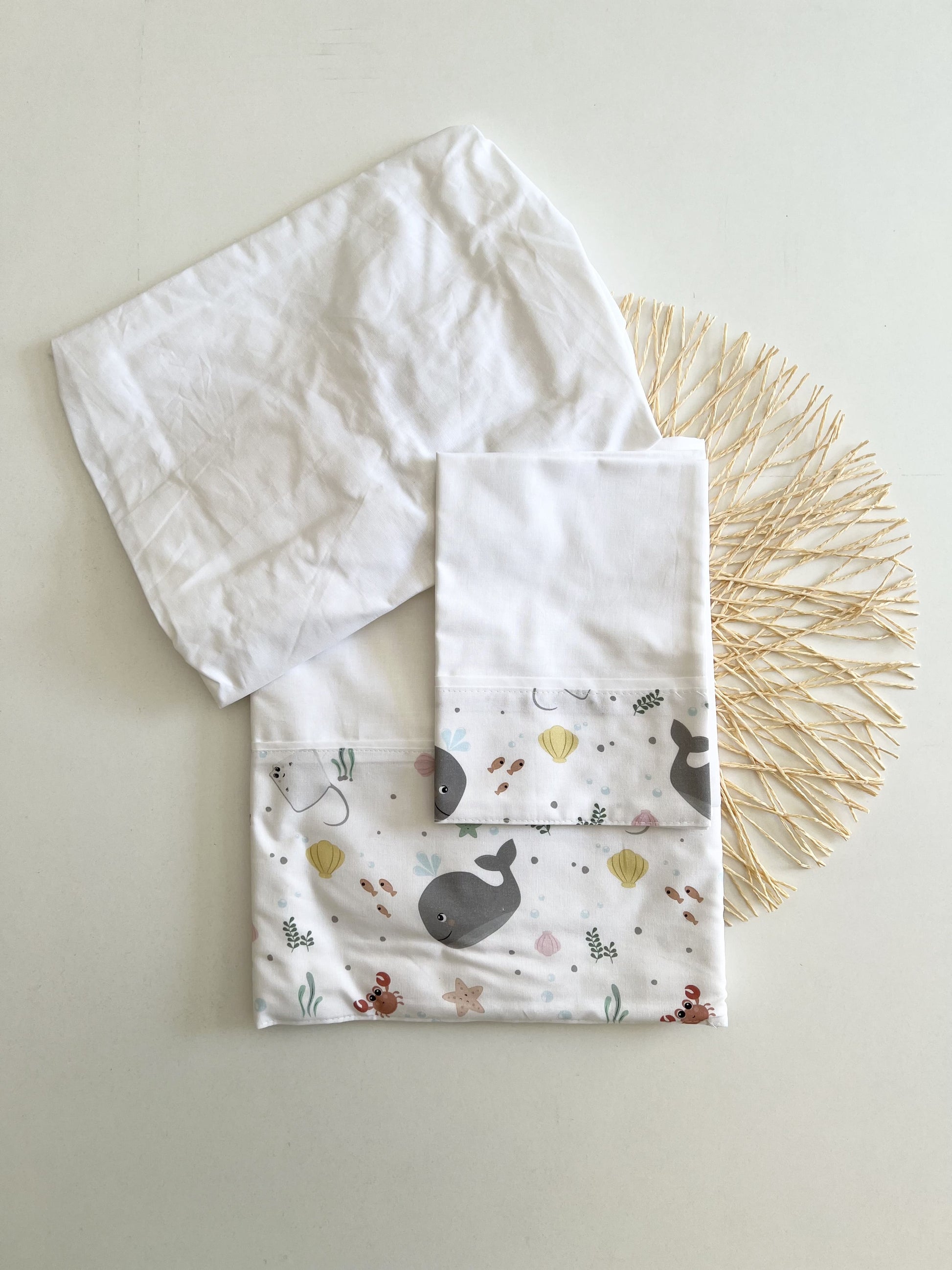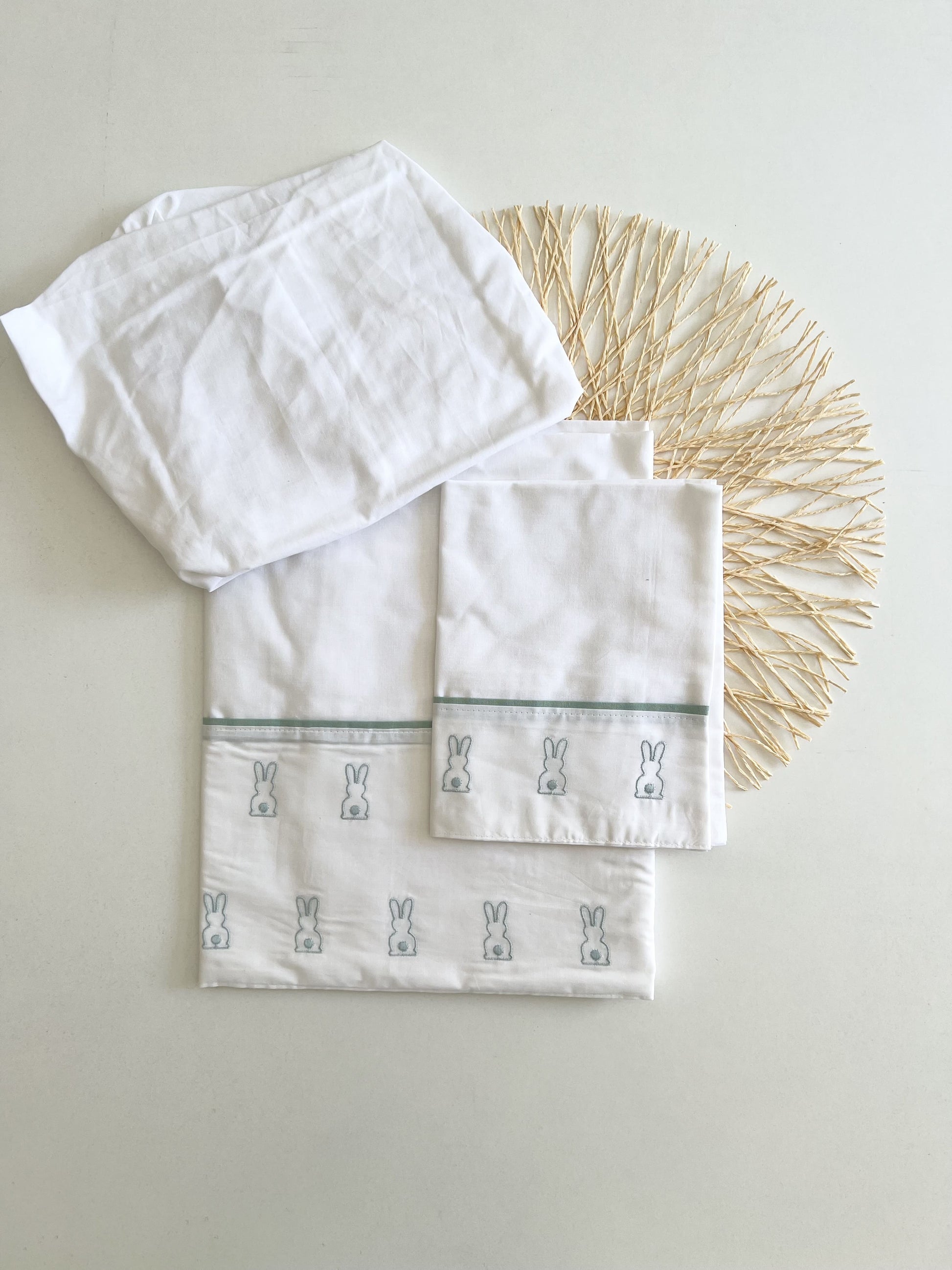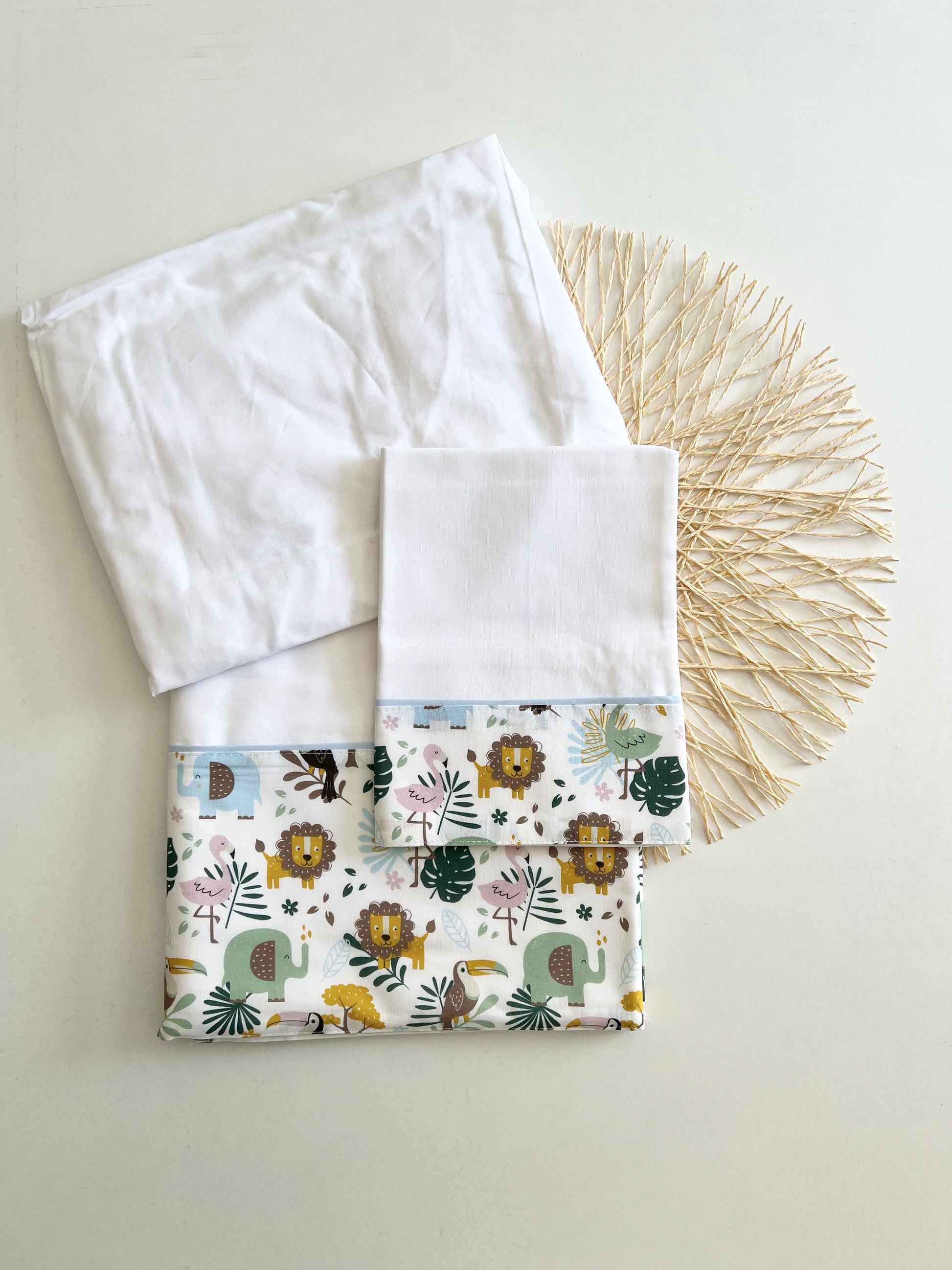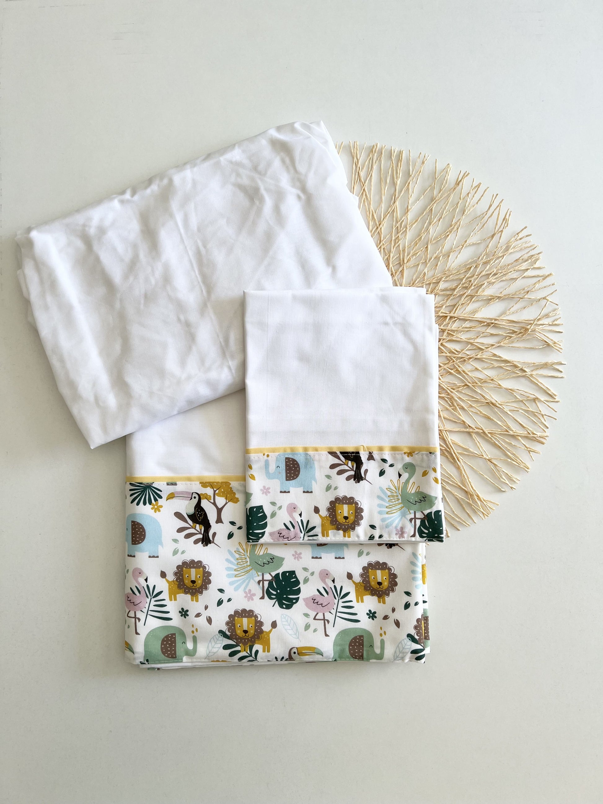 Lay your baby down on these soft sheets. Very colorful, they are a very special detail in your baby's room. The set includes a top sheet, pillowcase and bottom sheet.