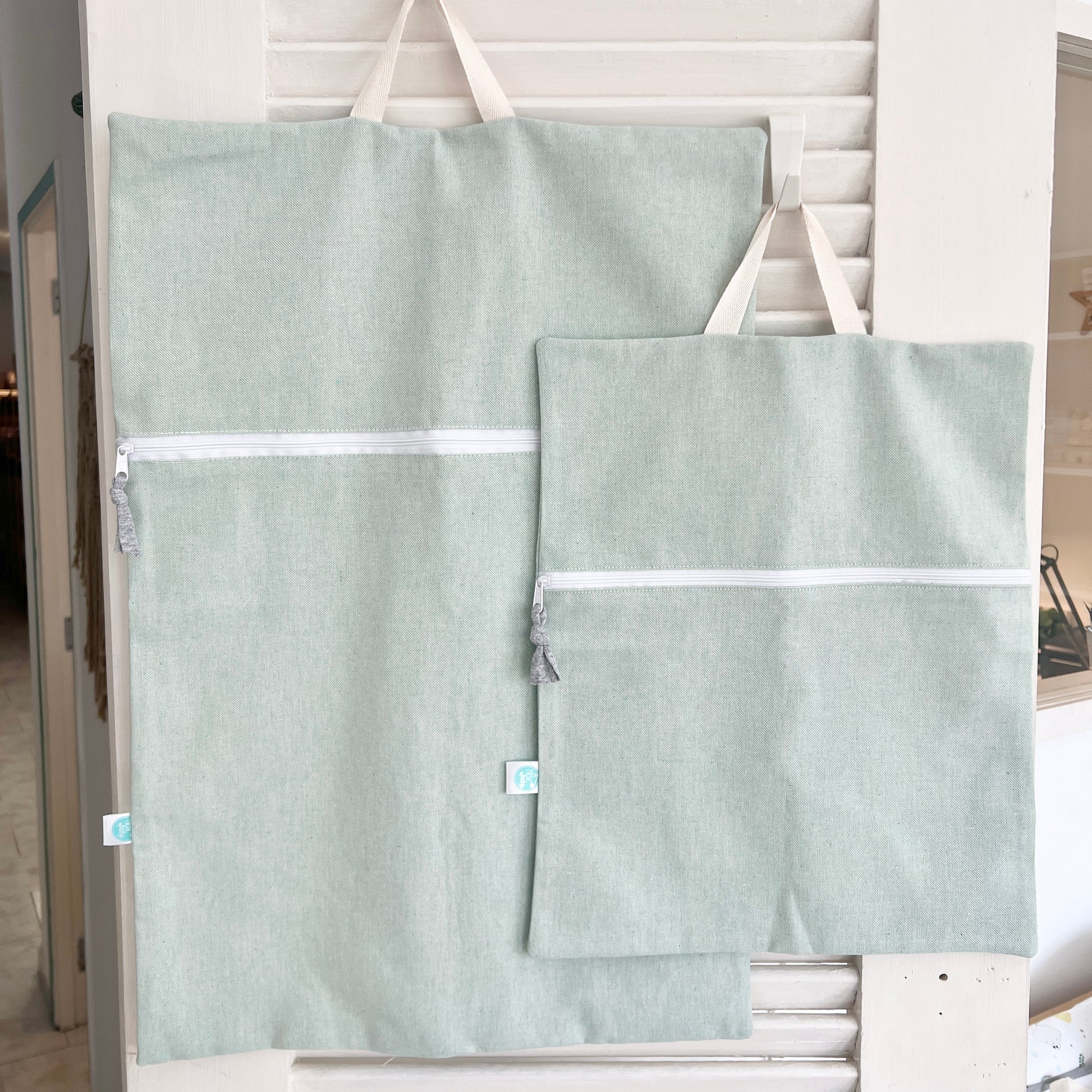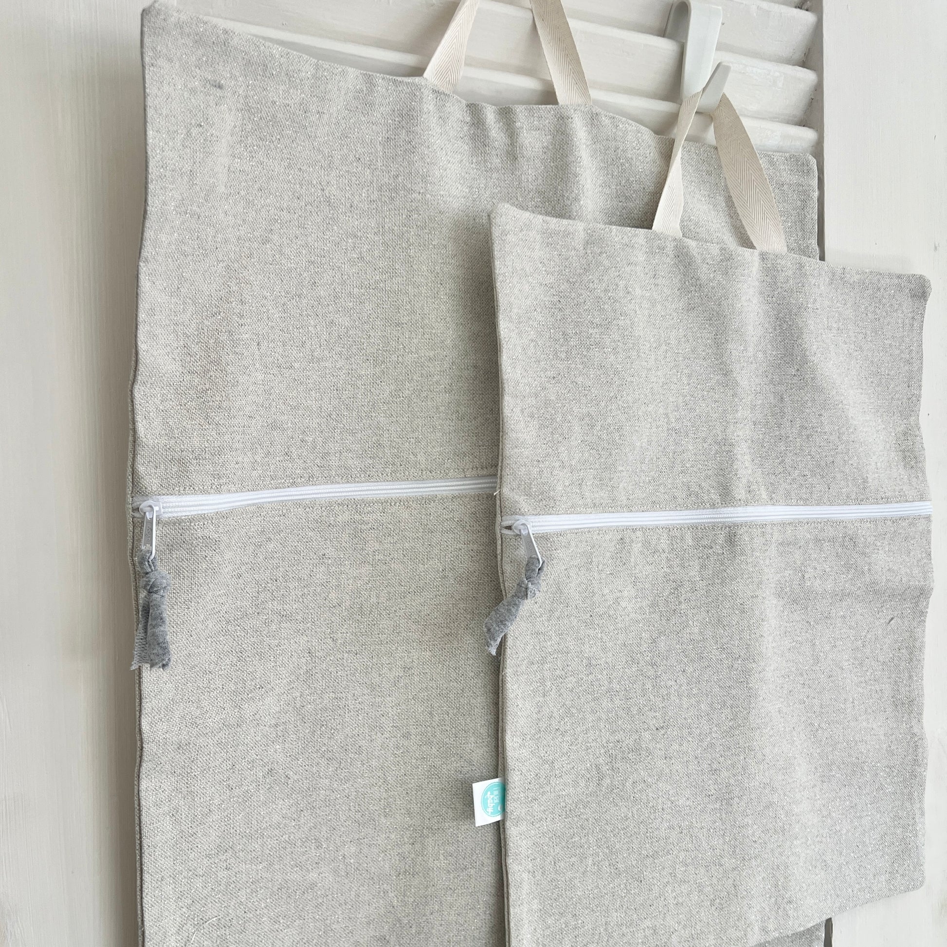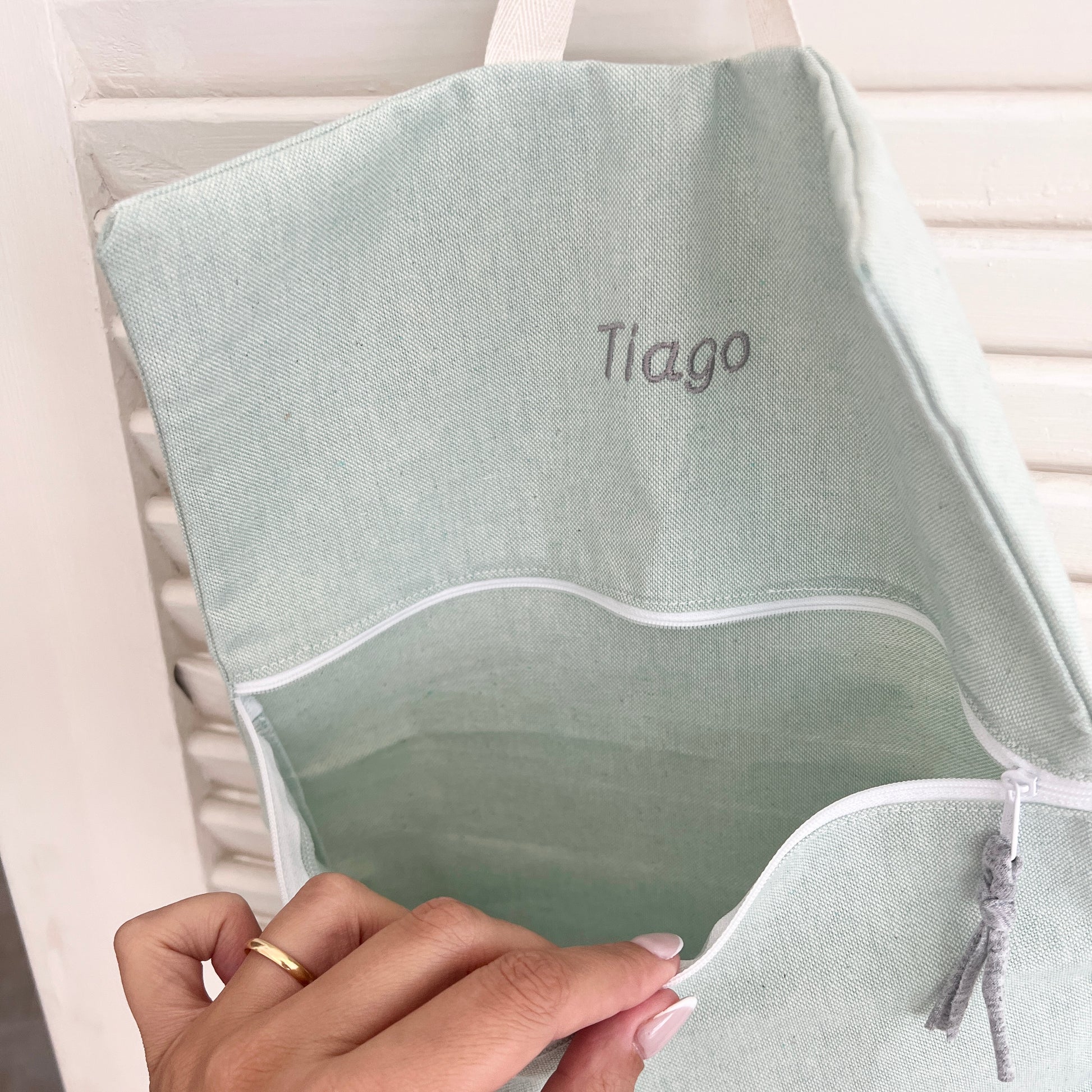 This changing pad closes and turns into a practical bag where you can carry a small pack of wipes, two or three diapers and even some cream. Waterproof fabric on the inside and printed cotton on the outside.