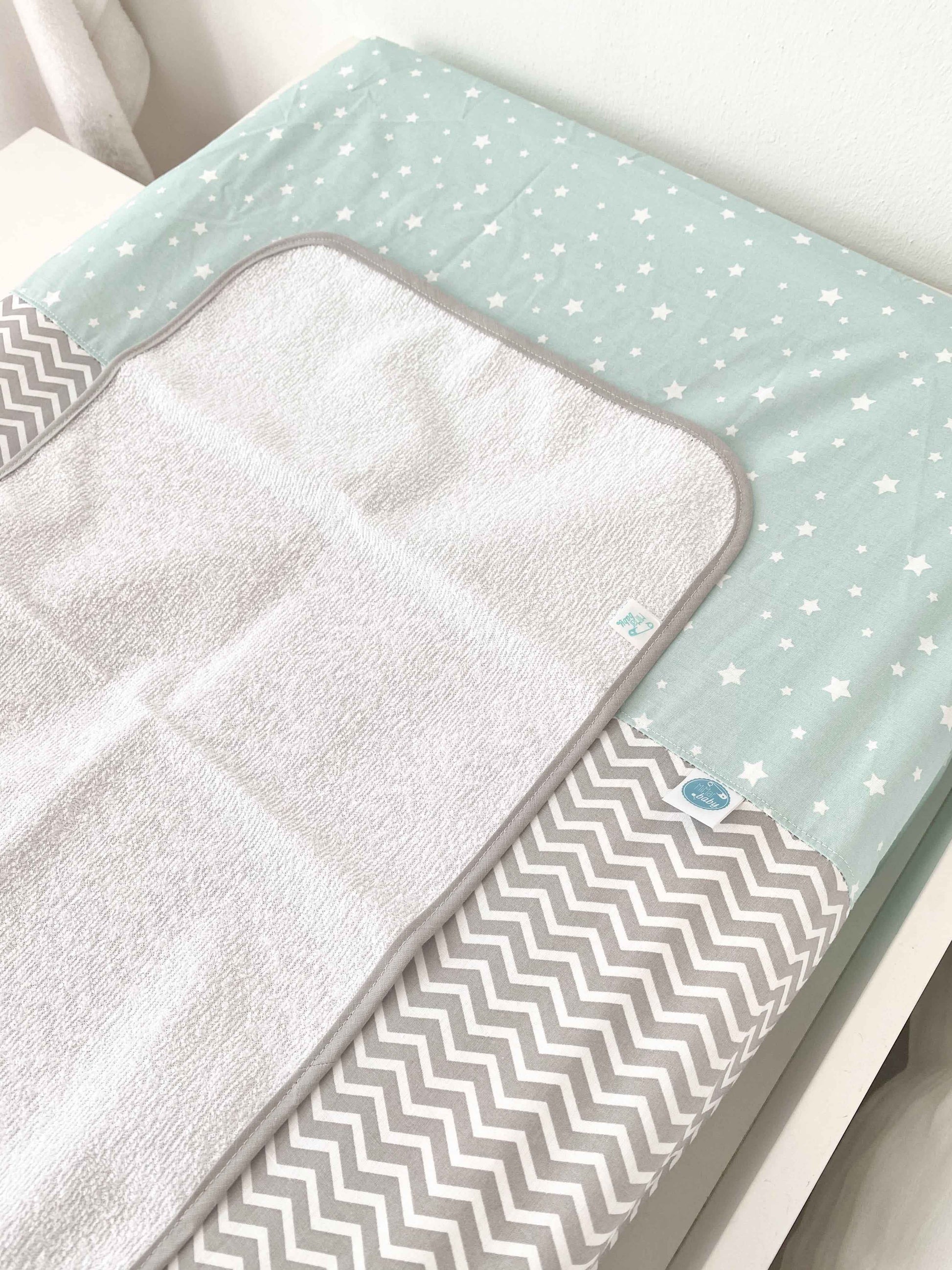 Haz que la habitación de tu bebé sea más cómoda y armoniosa eligiendo una funda a medida para tu cambiador. El forro incluye una protección impermeable.
