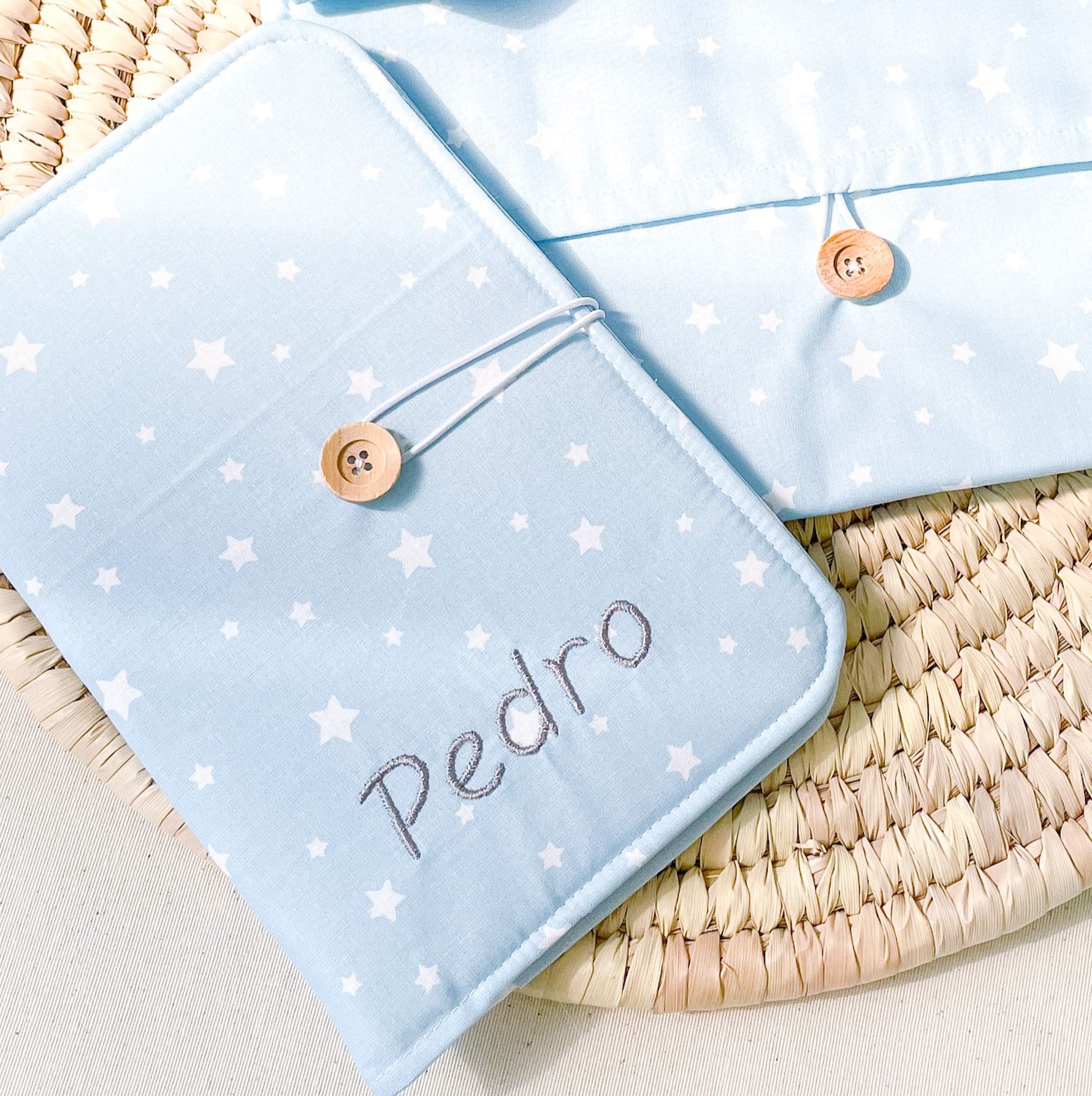 ATENCIÓN: debes colocar los nombres en el cuadro de texto, separados por comas. Los nombres irán estampados en el interior del portadocumentos, EXCEPTO la opción para UN niño, en la que el nombre irá bordado en la portada (lado exterior).